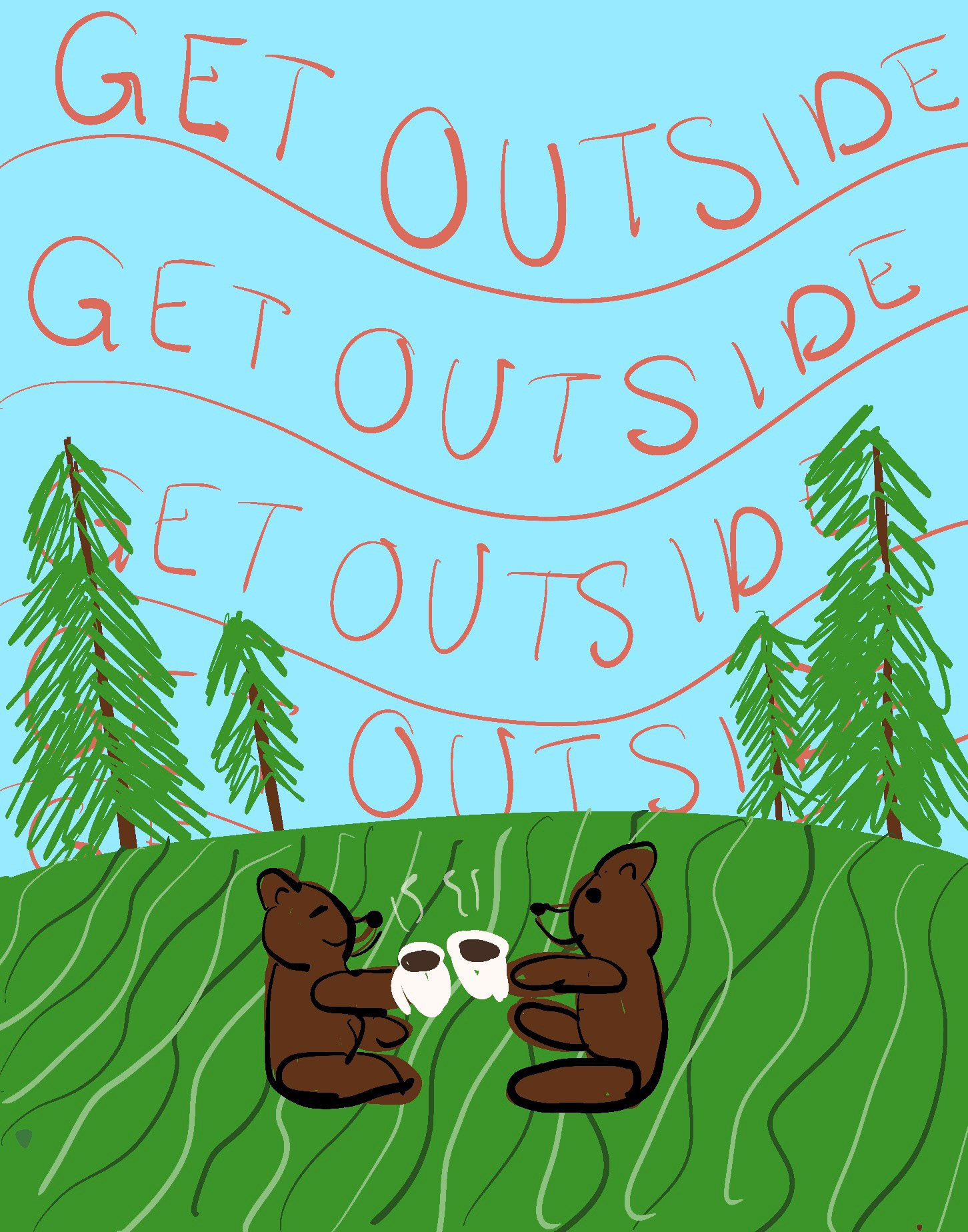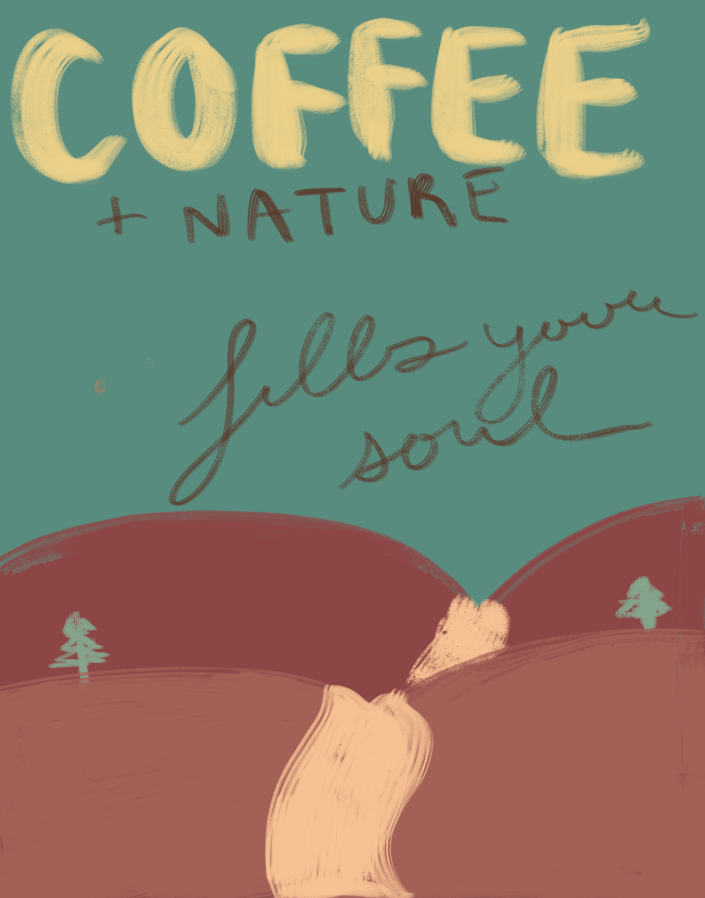 Wildwood Coffee Roasters is a fictional brand created by ChatGPT for a project in my Digital Media II course that I'm currently enrolled in. They are a nature-themed coffee shop. Wildwood was seeking illustrated poster designs that would promote their values of supporting parks and encouraging people to get outside, while marketing the brand at the same time. This project seeks to create two posters that keep the branding and feel that Wildwood aims for, and feel like similar styles.