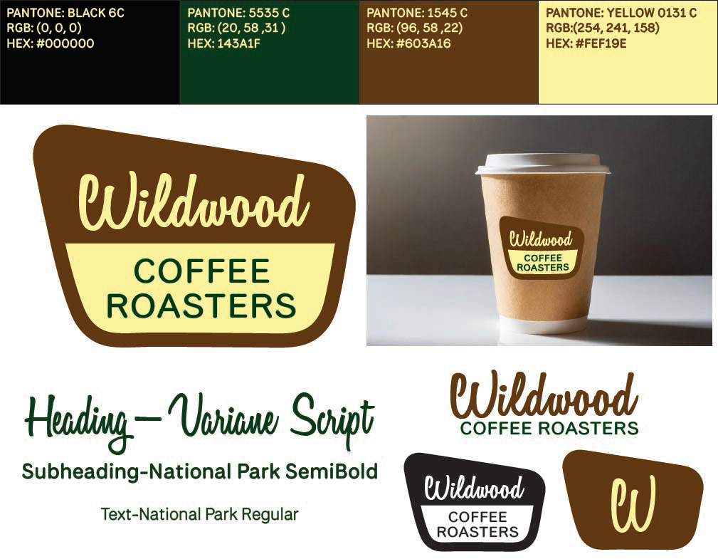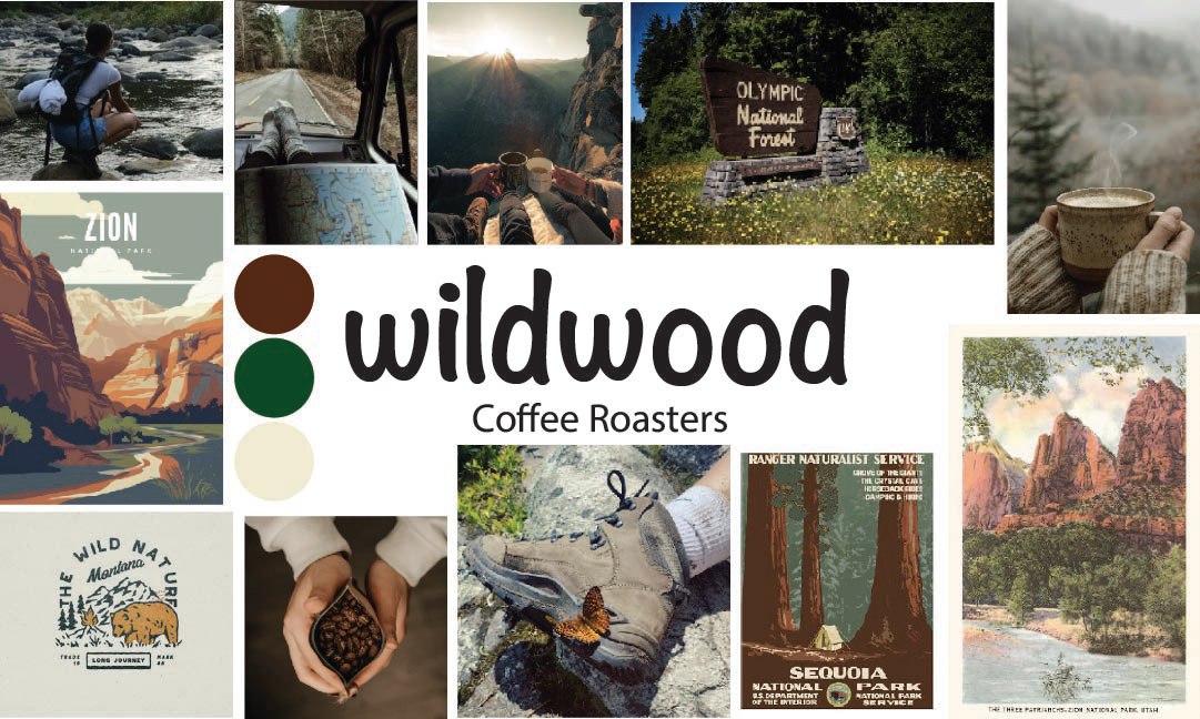 The logo and branding project challenged me in many exciting ways. It helped me see areas to improve. I learned some new things on Illustrator that I’ve wanted to learn, including optimizing illustrated objects for scalability and installing fonts that fit the branding. Making a mood board was my favorite part of the planning process and proved extremely helpful. I could not have done this without the feedback of my peers and professor. I kept listening to their feedback where I felt was applicable. For example, my professor helped me learn sizing because he noticed it was off. It helped me make my design look cleaner and more professional. I chose this design because it speaks to a part of me that I love. I get very inspired when going to landmarks and national parks. It’s so simplistic and peaceful, and it also challenges you to take better care of nature. I felt like those things combined encompass the goals that Wildwood Coffee Roasters had. Their new logo and branding will now attract more customers to join in on the causes that are exciting to them. Overall, I feel more equipped for my graphic design career journey.